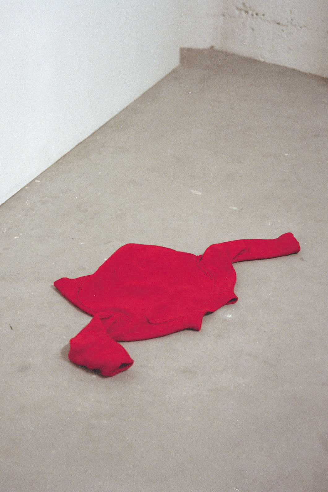 Similarly, in the photograph Jeté-tombé, it is absence that is captured: a red wool vest, abandoned after being thrown, materializes an absence still warm from the body that left it there, a trace of a past gesture, leaving room for open interpretation and reflection on what is shown and what is hidden. These works proposed another way of looking—a gaze that safeguards, that takes care not to reveal everything, that does not yield to immediacy, but instead values mystery, suggestion, and the presence of things in their withdrawal.